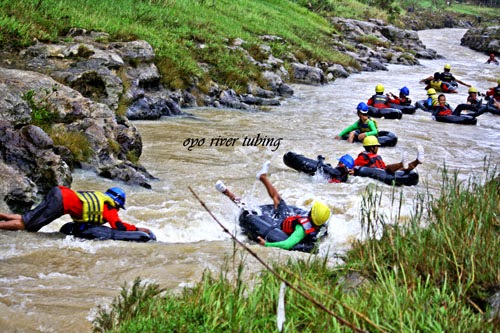 Body Rafting Jogja Body rafting sungai oyo(goa pindul gunungkidul jogja). Setelah keseruan menyusuri goa pindul jogja, rasanya belum lengkap kalau belum mengikuti perjalanan berikutnya di sungai oyo. Rafting atau arung jeram adalah suatu aktifitas pengarungan bagian alur sungai yang berjeram/riam, dengan menggunakan wahana tertentu. Oars paddle technique unlike others rafting, progo rafting use oars paddle.