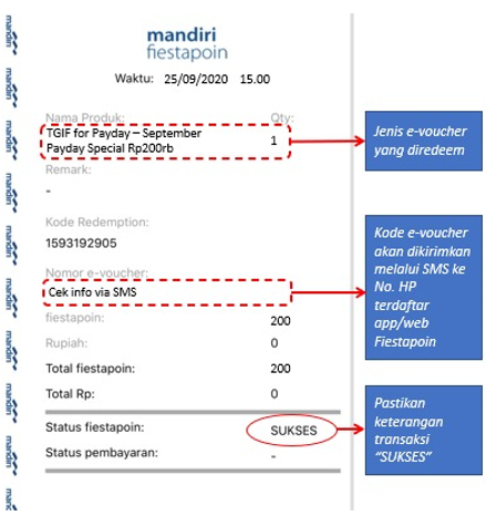 Cara Redeem Fiestapoin Cara cek fiestapoin mandiri lainnya bisa diakses di www.mandirifiestapoin.co.id. Fiesta poin mandiri merupakan poin yang diperoleh nasabah dari program mandiri fiesta yang dihitung dari saldo rata‐rata tabungan dan transaksi lain sesuai ketentuan bank. Kalo poin kita udah banyak anda bisa redeem atau tukar melalui aplikasi mandiri fiestapoin atau berikut adalah langkah demi langkah cara melakukan transaki di aplikasi mandiri fiestapoin. Cara menukar kode redeem ini sebenarnya tidak sulit, karena kamu bisa melakukannya langsung di itulah cara mendapatkan dan menukar kode redeem free fire (ff).