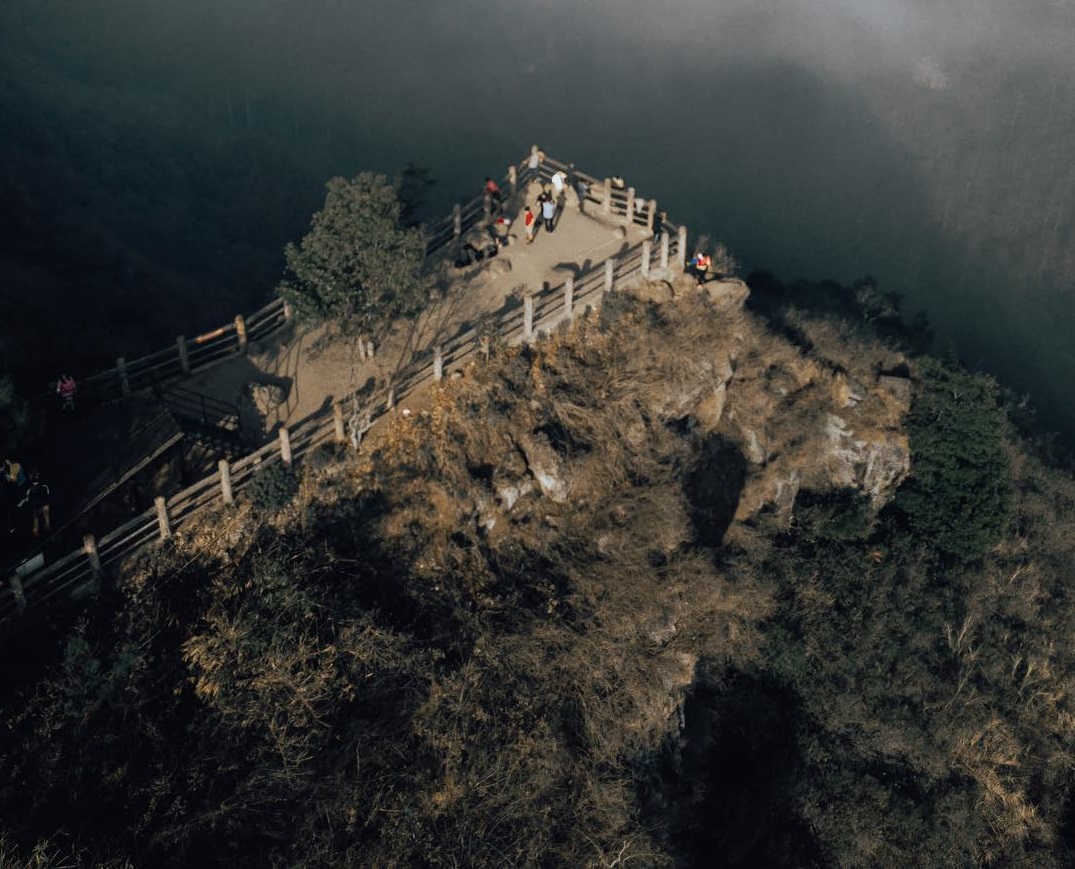 Tebing ini menawarkan keindahan alam dari jejeran hutan pinus. 11.000 per orang untuk wisatawan dalam negeri.