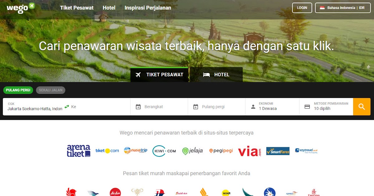 View Wego Tiket Pictures 2,291,207 likes · 55 talking about this. Bandingkan di lebih dari 1000 situs wisata temukan harga termurah cepat & mudah cari tahu sekarang. If you encountered any issue while using wego, please take a screenshot of the issue and send it to us so our technical team will do their best to solve it. Booking mudah & aman semua maskapai di sini! Compare over 1000 booking sites find the lowest price fast & easy booking find out more now. Also please provide us with your search details i.e.